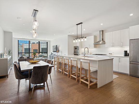 Welcome to this stylish and sophisticated, better-than-new construction, urban oasis at The Alcove! This exquisite 3 bed, plus den/office, 2.1 bath condo offers a serene retreat from the hustle and bustle of the city, while being a stone's throw from all the best dining, shops and easily accessible to transportation! Features include a modern chef's kitchen, luxury Viking appliances, quartz countertops, wide plank hardwood flooring throughout, and a generous primary suite & bath. Take in the open-concept layout and floor-to-ceiling windows that fill the corner unit home with natural sunlight. Appointed with professionally built-out closets throughout, gorgeous window treatments, all lighting switches upgraded to dimmable feature, fresh paint and smart home features that take this impressive condo to the next level! The home also boasts a limited PRIVATE rooftop ready with power and a gas line for entertaining while enjoying the Chicago skyline. Attached PRIME heated garage parking space and storage unit included in purchase price!