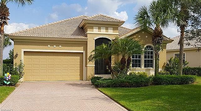 Beautiful great room floor plan with private wide lake and golf course view! This 3 bed, 2 full bath home shows great with open kitchen and living area. Furniture is negotiable and owners prefer to sell. Third bedroom can be used as a den and bedroom. There is granite in the kitchen, large tile on diagonal through the entry, great room and kitchen, crown molding in living room and master bedroom plus intercom. Electric shutters on the lanai. New 2015 AC condenser and dishwasher. Pool and spa in screened lanai (new screen in 2016) overlooking long blue lake and expansive golf course. Crown Colony is a premier golf community in Fort Myers due to location & the quality of its golf course & private membership owned golf club. Social, sports & full memberships available but not required to live here. Active tennis community. HOA fees are low for a high level of amenities including community pool, spa, fitness room, outdoor gathering/kitchen area & tennis. County taxes only & no CDD. All homes in this community were built by quality builder Centex (now Pulte).