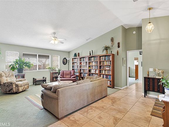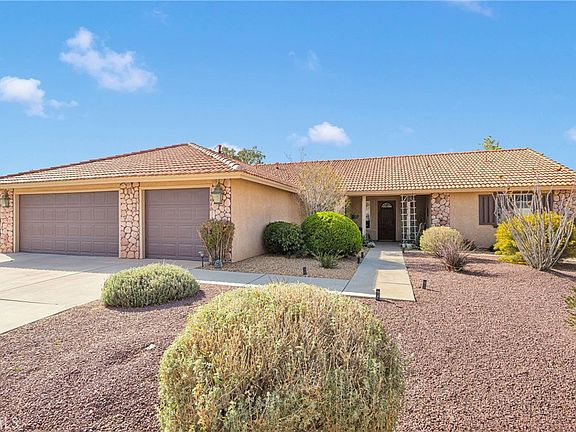 Nestled serenely within a peaceful cul-de-sac in Apple Valley, this exquisite 4 bedroom, 3 bathroom residence offers a sanctuary of comfort and elegance. As you enter, the first living area welcomes you with soaring high ceilings and expansive windows that flood the room with natural light, creating an inviting atmosphere. Ideal for hosting memorable gatherings, the formal dining room exudes sophistication, while the chef's dream kitchen awaits with granite countertops, abundant cabinet and countertop space, and a breakfast bar that extends seamlessly into an additional dining area. Adjacent, the second living area features a cozy fireplace, perfect for relaxing movie nights after dinner. Located conveniently off the kitchen and family room, the first primary suite (perfect for in-laws, young adults, and rental opportunity) beckons with its lofty ceilings, oversized windows, and a spacious walk-in closet. The attached bathroom showcases a stunning walk-in shower, offering a luxurious retreat within your own home. On the opposite end of the home, you will find 3 additional bedrooms and 2 more full baths. The second primary suite boasts high ceilings and a tranquil view of the backyard. Its attached bathroom is appointed with large stone tile flooring, a soaking tub, walk-in shower, ample countertop space with dual sinks, and not one but two closets, providing both functionality and elegance. A dedicated laundry room offers ample storage and cabinet space for linens and essentials, enhancing everyday convenience. Outside, the expansive backyard beckons with a covered patio, desert landscaping, raised beds for gardening enthusiasts, and a vast area with potential for customization, perhaps a pool? A storage shed provides additional space for tools and equipment, while a generous 2 car garage ensures ample room for vehicles and recreational gear. HVAC SYSTEM ONE YEAR NEW! Surrounded by stunning mountain vistas, this home in Apple Valley presents a rare opportunity to embrace a lifestyle of tranquility and luxury.
