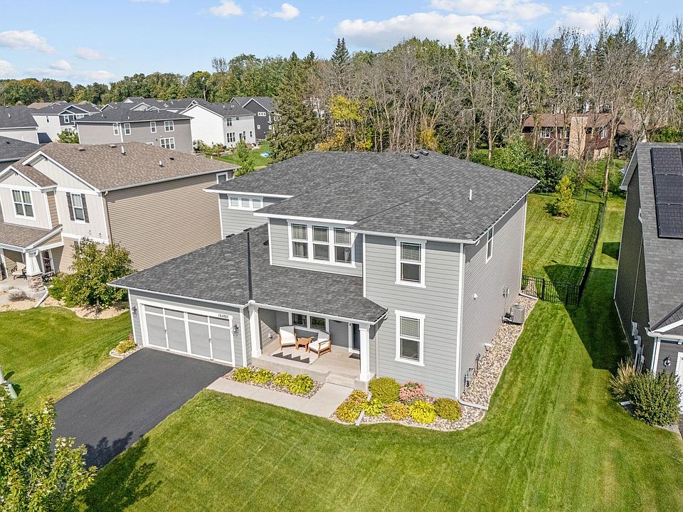 Beautifully updated throughout w/ bright, open floor-plan—feels LIKE NEW w/ extensive updates made after purchase. Gourmet Kitchen features white cabinetry, large center island, quartz counters, tile backsplash, SS apps (incl. gas cooktop), hood, white ceramic sink & walk-in pantry, opening to Living Room w/ shiplap fireplace, informal Dining & planning center. Walks out to private backyard w/ stamped concrete patio, tons of green space & fully fenced-in rod iron fence. ML includes formal Dining w/ shiplap, designated Office, Laundry Room w/ front-load washer/dryer & built-ins, plus updated lighting & LVP throughout. UL offers 4 Beds (all w/ walk-in closets), 3 Baths & oversized Loft w/ built-ins. Primary Suite features tray ceiling, board & batten accent wall & ensuite Bath w/ dual sinks, granite, oversized shower & dual closets. Addt’l perks include gutters, water softener, radon mitigation system & window treatments. Unfinished LL offers framed-in Bedroom, roughed-in Bath & built-in shelving for storage. 3-car Garage w/ tandem stall for addt’l car or storage. Amazing location—close proximity to the neighborhood playground & walking path, with the new phase of the development anticipated to add pickleball courts. Conveniently located near shops, restaurants, trails, schools & more!
