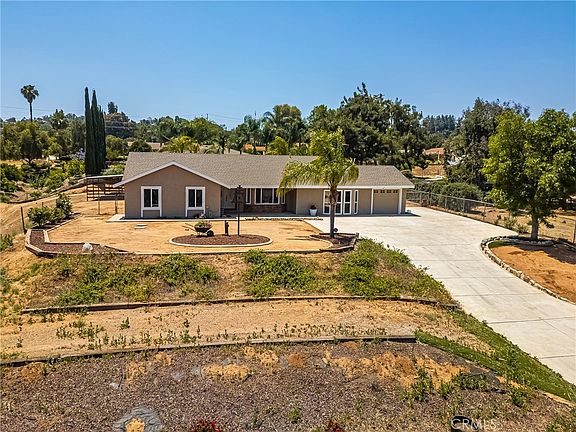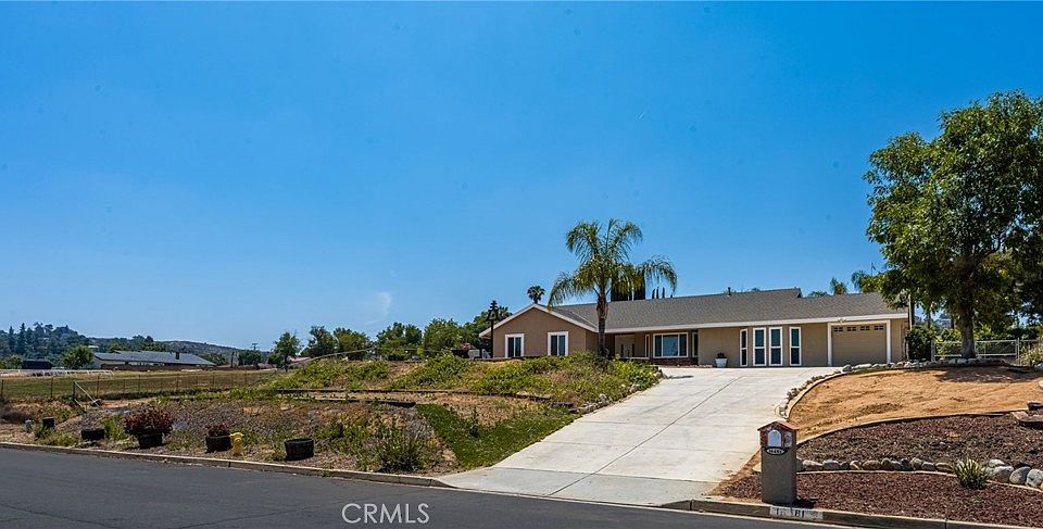 Set amid the scenic rolling hills of Woodcrest, 16481 Valle Vista Way presents a rare opportunity to own an authentic horse property that combines rural tranquility with everyday convenience. This single-story ranch-style residence offers 4 bedrooms, 2 bathrooms, and approximately 1,914 square feet of comfortable living space, set on an elevated 0.88-acre lot ideal for equestrian use or future expansion. Inside, a spacious living room opens to an upgraded kitchen featuring generous cabinetry and counter space, while the adjacent dining area provides a welcoming setting for family gatherings or entertaining. The well-appointed bedrooms include a primary suite with a private bath and ample wardrobe storage. Recent improvements include fresh interior and exterior paint and all-new carpet throughout. A thoughtful garage conversion has transformed the original 3-car configuration into a versatile space that now includes a 5th bedroom, 3rd bathroom, and a 1-car garage—perfect for guests, a home office, or multi-generational living. Outdoors, the newly renovated pool and spa create a private oasis surrounded by open land with endless possibilities. The property also features a long private driveway, paid-off solar, and ample room for RV parking, animal facilities, or additional structures. Zoned for horses and enveloped by rural charm, this home offers a true country lifestyle without sacrificing modern convenience. Located in one of Woodcrest’s most desirable areas, this property offers easy access to top-rated schools, shopping, and major freeways—blending privacy, functionality, and the best of Southern California living.