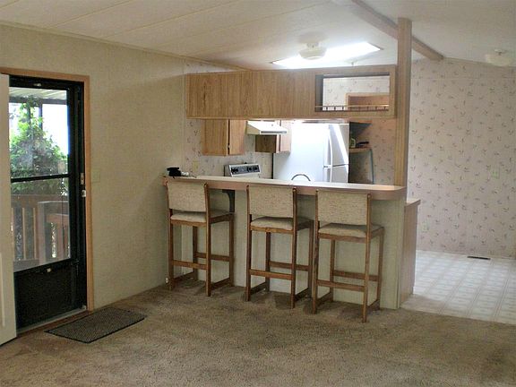 Welcome home to this 2 bedroom, 1 bath, Fleetwood. This beautiful forest gem is tucked between the trees in a wonderful resident owned community in Clackamas. It offers approximately 924 SF of room and its features include 2 bay windows in the living room, skylight, new refrigerator and eating bar in the kitchen, large master bedroom and walk in jetted tub in the bathroom. Living room measures approximately 13x19', dining room 13x9.5', master bedroom 13x14' and 2nd bedroom 9.5x11'. Water heater approximately 2 years old. Roof approximately 5 years old. Front awning and carport combo measures approximately 9x51', front ramp measures approximately 25' (to code) and joins the front deck which measures approximately 14x8' and adjoins the rear view deck measuring 19x8', back door deck 4x3' and back door awning 4x3' and 5x6' storage building. Washer & dryer stay. Heat pump for economical heating and cooling. Access to Huckleberry park. Pet Policy: 3 pets, no restrictions
