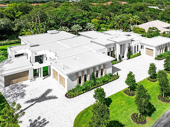 This sprawling NEW CONSTRUCTION estate is situated on one acre within the prestigious gated community of Foxe Chase, offering 12,500 square feet under roof with approximately 8,000 square feet of meticulously designed living space under air and a 7-car garage capacity. A harmonious blend of architectural elegance, modern technology, and master craftsmanship, this custom-built residence represents the pinnacle of South Florida luxury living. An impressive entryway leads into sun-drenched formal living spaces with soaring ceilings and refined architectural details. The thoughtful layout features five ensuite bedrooms, a wellness room off the primary suite, an elegant office, a sophisticated club room, a hidden scullery back kitchen, butler's pantry, dual primary baths, and a safe roomeach designed to balance comfort, functionality, and timeless sophistication.