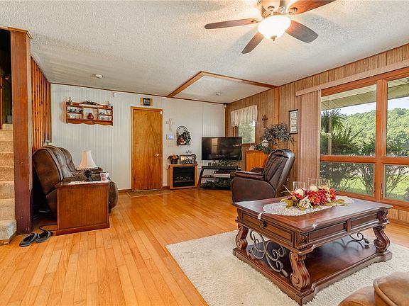 Breath taking views of the beautiful and peaceful Ozark Mountains. Very large two story well built home. Needs some updating but ready to live in. Lots of rooms for that big family or lots of company. Two ponds, great privacy, well landscaped. One car garage attached to the house with 5 car detached garage and another detached garage with RV garage and 13x40 workshop. 5 bedrooms, 4 baths, 3 dining rooms, and 3 living rooms upstairs & downstairs. HVAC replaced. Upstairs 1 year ago, downstairs 3 years ago. Property has 9 car garage, built insulated walls and sheetrocked.