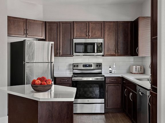 - Exterior features: Barbecue, Free Weights, Kitchen Island, Package Receiving, Quartz Countertops, Stainless Steel Appliances, Sundeck, TV Lounge, Wood-Style Plank Flooring