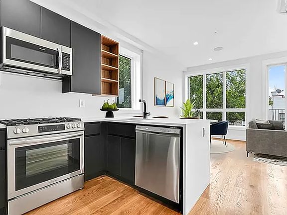 Be the first to live in this beatiful apartment. Apartment features a luxury finished island kitchen, with high end stainless steel appliances, including dishwasher and microwave. Walk out to a private balcony off the living room. Huge windows throughout allowing lots of natural sunlight. Tons of Natural Sunlight flows through this massive Floor-Through Unit!