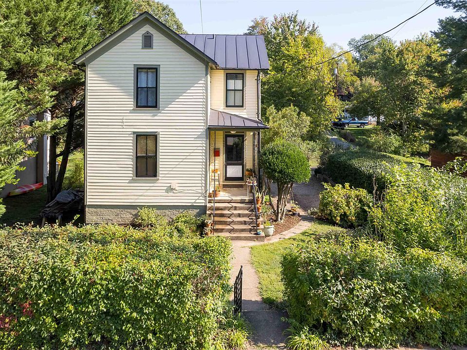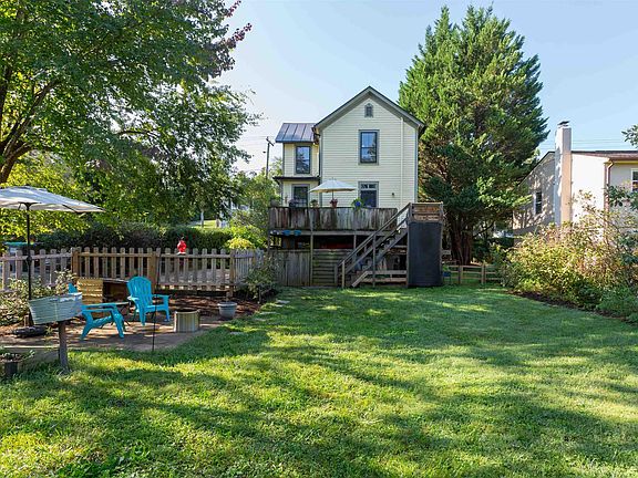 This an historic home, built in 1900. Originally it was the home of John Drumheller ("loom-fixer" for the Woolen Mills) and his wife Alice & their 6 children. This neighborhood is now in an Historic Conservation District. This designation provides some protection for the historic character of the neighborhood without placing undue burdens on homeowners who want to renovate. See attch'd docs & the media links for a Woolen Mills history (plate #32 is this home). This property has been renovated and updated over the years but retains much of it's original charm with its pine flooring, tall baseboard trim, classic stair rail, and hexagonal floor tile in the baths, including the "flower" tile arrangement in the upper bath. Inside the kitchen has soapstone counters and modern appliances, updated light fixtures, on demand water heater and central HVAC. The living area has been opened up to the dining and kitchen areas to make a more modern feel. A 3rd BR (or ofc) has been finished out in the walk out basement with plenty of workshop space and a laundry area. Enjoy the view of rain gardens installed in the backyard from the deck or patio. Walk 2 blocks to Riverside Park & trails, 3 blocks to the Wool Factory, 1 mile to the Downtown Mall.