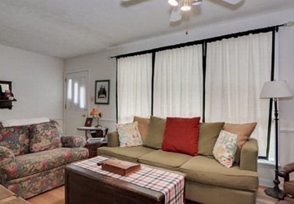 Adorable brick ranch with hardwood floors-updated kitchen/breakfast (lots of cabinet /countertops, tiled kitchen floors)-sliding glass doors-built in brick grill-living room with large window and extra sitting area/built in. Single car garage with laundry room-large fenced yard with fire pit and storage building-patio-brick walk way- Front of home has inviting front porch- Call for appt. Alarm