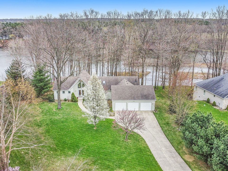 Stunning custom-built waterfront home with river access on 1+ acre on the St Joseph River. Short commute to South Bend, St. Joseph/Benton Harbor, and Lake MI. Thoughtfully designed for sweeping water views throughout the home! Prepare to be amazed as you step into this home with its breath-taking floor-to-ceiling windows that overlook the river and WOW every visitor. Living room has wood floors, vaulted ceilings with recessed lighting, that amazing river view, and a dual sided fireplace that connects to the dining room. Gourmet kitchen has all the space you'll need to create meals of all sizes. Large center island, breakfast bar, and additional prep space make entertaining a breeze. New stainless-steel appliances, beautiful solid cherry cabinets built-in oven (in addition to the range), and lots of pantry space. Off the kitchen is the laundry area, half bath, multiple storage closets, and access to the huge, screened porch that is perfect for enjoying bug-free outdoor living! Or kick back on the large deck that is constructed for maximum river viewing! Main floor primary bedroom has great light, built-in shelving, and an en-suite bath with soaker tub, separate shower with bench, large dual sink vanity, and walk-in closet. The walkout lower level has a lovely family room with access to the backyard patio with river views. Private office area with dual desks and sliding barn doors - great for working, gaming, or online school. 2 bedrooms, a full bath, and lots of storage space completes the lower level. Extra deep 3-car garage, cement board siding, and wired for a generator. Enjoy the natural surroundings with quiet fields, wildlife (turkeys, foxes, deer, bald eagles), and the Trillium Ravine Preserve just down the street - a 15-acre park with walking paths and wildflowers. Choose Buchanan schools with their Promise Program or Niles schools. Close to Fernwood Botanical Gardens, River St Joe Brewery, and just 90 minutes to Chicago.