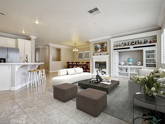 Don't miss this incredible opportunity to own this gorgeous one-story home nestled in a quiet neighborhood within the Moreno Valley Ranch Community. This beautiful, specious, TURNKEY house features a tile roof, central AC, fireplace, high ceiling adorned with crown molding, bright and airy interior with newer paint throughout, large windows with shutters, elegant floor tiles, and recessed lighting. A well-maintained 5 bedrooms and 3 full baths home includes living room, formal dining room, breakfast nook, dedicated laundry with newer washer and dryer included in the sale, and direct access to 3-car garage. The backyard patio cover is perfect for entertaining. The kitchen is equipped with an abundance of cabinets and a center island. The primary bedroom has a large walking-in closet. The primary bathroom has a double sinks vanity with quartz countertop. Convenient location, just minutes from everything, restaurants, shopping areas, banks, schools, Moreno Valley college and lake Perris. HOA offers a variety of recreational amenities, including access to lake paddle & fishing boats, pool, spa, gym, clubhouse, and both private and public parks within the community for residents to enjoy!
