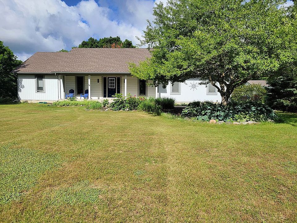 Beautiful ranch with open floor plan and vaulted ceilings on almost 2 acres. The back acre is completely fenced in and surrounded by tall (30-45 feet) spruce trees for total privacy. The master bedroom includes a private bath. There is two additional bedrooms and another full-size bathroom. Partially finished walk-out basement. Extra two car garage in back yard. Conveniently located near shopping and US 23. Recent updates: AC, Door wall, Hot water tank, Dishwasher, Garbage disposal, Detached garage/entry door, All electrical switches and receptacles. Other updates, including new roof in 2013, new high-efficiency furnace in 2014, new garage door in 2015, new garage storm door in 2015, well tank in 2015, This will not last long, contact owner by phone or via email Accepting offers till Sunday June 20th