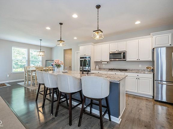 This very special house is nestled in the sought-after community of Heritage at Vermillion which is known for its friendly neighbors, family get-togethers, and community pool. Over 3,300 square feet of living space and a 10,019 square foot private yard, offering a harmonious blend of space, style, and modern living. The heart of this home is undoubtedly the kitchen, featuring a large kitchen island perfect for gathering and conversation, while granite countertops and a gas cooktop offer a sophisticated culinary experience; the double ovens are great when entertaining a large group. A huge walk-in pantry and water filtration system complete the package. The great room offers a comfortable space to relax and unwind, enhanced by the inviting ambiance of a gaslog fireplace. The entire interior, including the trim, has all been freshly painted, and new updated lighting was added on the main level. Upstairs, you'll find a large loft for reading, gaming, or TV and also an upstairs laundry room for added practicality. The outdoor living space has been enhanced by a new pergola, paver patio, and waterfall feature, all providing a wonderful area for relaxation and entertainment. A lush tree line makes it a private retreat to enjoy the outdoors. Sellers also added an invisible fence. The 3-car tandem garage has over 700 square feet for added storage and also has a keyless entry. Located in the Hamilton Southeastern School District, and convenient to parks, shopping, dining, and entertainment. Quick access to the interstate and downtown Indy.