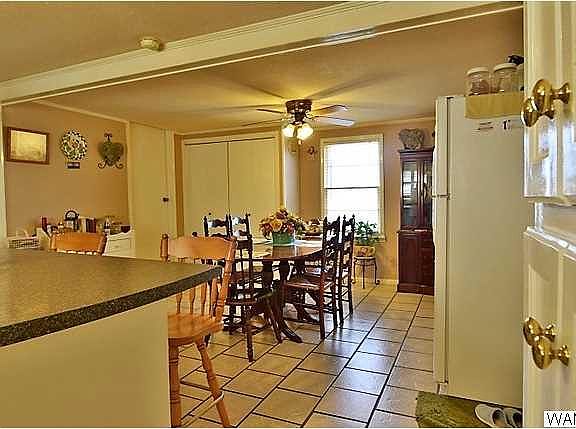 Eat-in kitchen with island bar and plantation shutters. Large greatroom with fireplace and wood insert. Wood shed remains. Roof is one year old. SOLD AS IS.