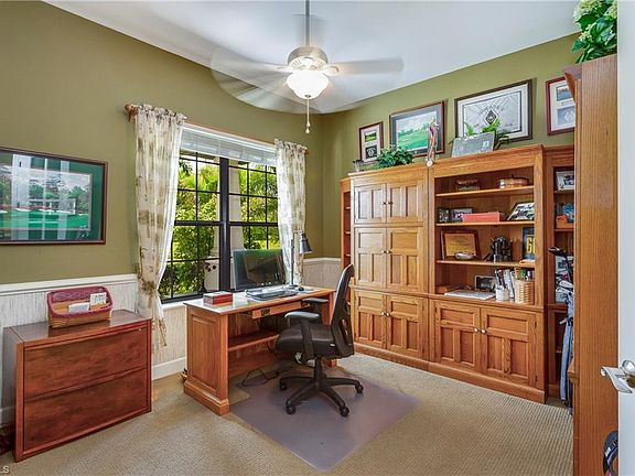 Former Model Home in River Hall Country Club with Golf Membership and Maintenance Free Living! You'll love entertaining in this 3 Bedroom, 3 Bathroom Home with Split Floor Plan, Private Office, Dry Bar, Sun Room and Surround Sound. Master Bedroom has Ensuite Bath with Dual Vanities, Jetted Tub, Large Shower, and Expansive Walk-In Closet with Plenty of Storage Space. Kitchen has Solid Wood Cabinets with 42" Uppers, Roll-Out Drawers and Dovetail Construction, Silestone Countertops, and Under-Cabinet Lighting. Best of all, the outdoor living space has under-truss seating with TV, backs up to a preserve which is great for privacy, and has a waterfall and fountain with solar heated pool and spa with a cave finish to absorb heat. Chosen for it's privacy and serenity, this Craftsman Style Home has been diligently maintained by one owner. River Hall is a friendly golf course community with an active social calendar and a Friday night dinner club. Move right in and start enjoying the good life!
