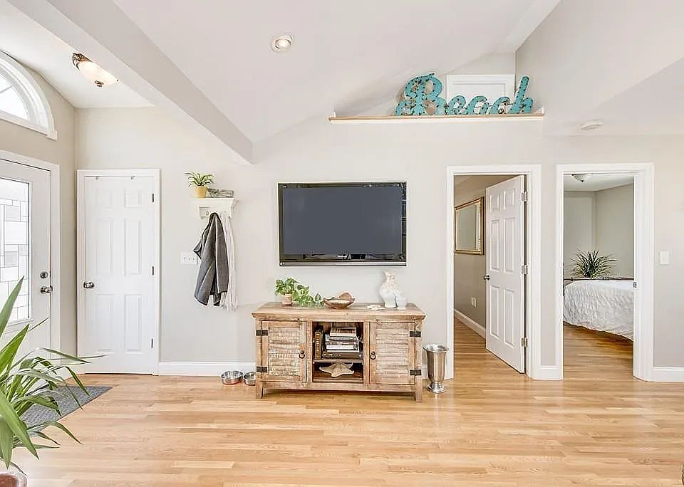 Custom kitchen with granite counters, stainless steel appliances, spa-like full bath, laundry closet with in unit washer and dryer. Open Layout living room, kitchen and dining area with cathedral ceilings, hardwood floors and lots of natural light. Full basement, nice size fenced back yard, oversized 14 x 16 storage shed Driveway parking for up to three cars. High efficiency GAS heating system, central AC. Just a short walk down the street to the bay. Owner pays for water/sewer. Tenant pays electric and gas. Lawn care included in rent. Minimum 12 month lease. No Smoking.