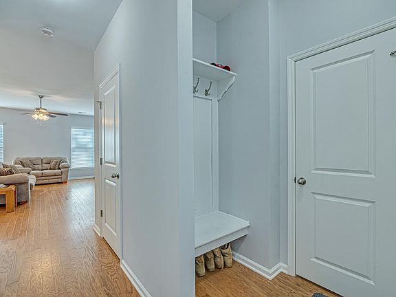 PERFECT! Pride of ownership really shows!!True one story home. SPLIT FLOOR PLAN- master is on right side of the home for privacy with guest bedrooms on the left side. Right side of the house sits next to HOA WOODED BUFFER. Extra deep front porch for your rocking chairs and afternoon relaxing. Radiant barrier on roof sheathing increases energy efficiency. 13 Seer HVAC has Nest thermostat with wifi capability. TANKLESS HOT WATER HEATER. Automatic garage coach lights on exterior. Gutters have guards to keep out debris & make cleaning a breeze. In wall pest control system. REAL Shaw hardwood floors (color is ''All in 223 Caramel'') and neutral colors with decorator finishes make this home one of a kind. Walk in closets in EACH bedroom. LED lighting throughout. CAT 5 wiring. Custom built "drop zone" is perfect for shoe & backpack storage, as you enter the home thru the garage. Kitchen offers walnut colored, staggered cabinets with Crown molding. Countertops are "Giallo Quarry" Silstone. Electric, smooth top range has gas hook up located behind it, if you prefer to cook with natural gas. Large island has room for entertaining & allows the chef to part of the party. Master bedroom has tray ceiling and over looks backyard. Master bathroom has been COMPLETELY REMODELED. Decorator porcelain tile on the floors, Cambria Quartz on the countertops and a low entry 5' x 4' Silestone shower. Vanity is raised and has 2 sinks for convenience. Guest bath has raised vanity with corian sink. Both guest bedrooms have walk in closets. 2 car garage has shelving for storage. Backyard is partially fenced.