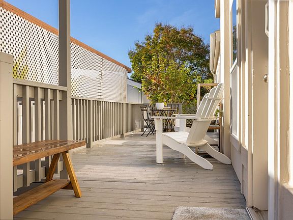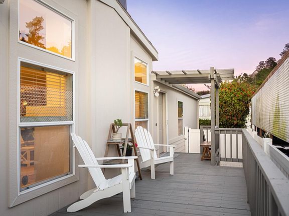 Situated in a highly desirable, land-owned all-ages community, this beautifully maintained 2003 manufactured home offers comfort, privacy, and convenience just moments from Highway 1. Featuring 3 bedrooms plus an office/flex space, this home boasts high ceilings, a spacious kitchen with tile floors, and a separate dining area, ideal for gatherings and everyday living. The sunny, open-concept living room creates a warm and inviting atmosphere, complemented by a walk-in cedar closet in the primary suite. Enjoy the outdoors with a private yard, expansive deck- perfect for entertaining, and freshly painted exterior. A long driveway provides ample parking, plus there's a large storage shed for added convenience. Residents of this peaceful cul-de-sac appreciate friendly neighbors and access to fantastic amenities including a clubhouse, solar-heated pool and spa, gym, and recreation room with ping-pong tables. This home blends privacy, community, and functionality in one of the areas most sought-after land-owned neighborhoods. A rare find offering the perfect mix of space, comfort, and location.