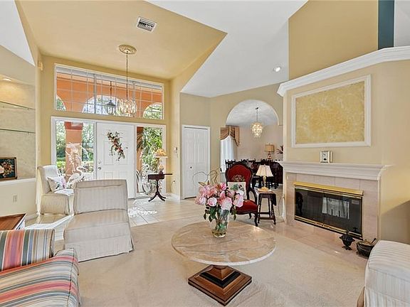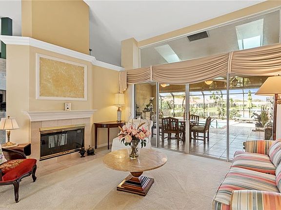 Stunning crimson sunsets await you in this WATERFRONT POOL HOME w/long lake views! Plenty of room for family & entertaining w/2,550 sf under air, 4 bedrooms & 2.5 bathrooms, 2-car garage w/storm resistant door & circular drive. Light & bright floor plan w/formal living room w/double fireplace & formal dining, as well as an open concept kitchen overlooking the family room & lake views beyond. Generously sized kitchen offers stainless steel appliances, granite countertops, breakfast bar & casual dining area. The spacious master bedroom has a luxuriously large bathroom w/two vanities, separate tub, walk-in shower & direct access to the lanai. You'll enjoy the Florida lifestyle to the fullest on the upgraded screened lanai w/covered dining area & heated pool & spa. The lake offers excellent bass fishing, canoe/kayaking & abundance of waterbirds including eagle fledglings each year! Home offers whole house rolldown shutters & newer roof still under warranty. Perfect NAPLES location in The Vineyards w/plenty of active lifestyle amenities, optional membership in the Golf & Country Club including 36-hole championship golf, tennis, pool, Wellness Center, spa, fitness & social activities!