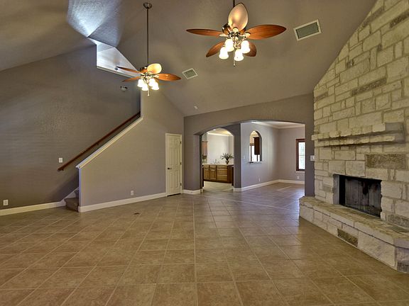 2 story hill country hm on level lot in gated Kestrel Air Park. Open floor plan. Cathedral ceilings in main living w/ rock fp, plantation shutters, dual fans, surround sound & tile floor. Kitchen w recent appliances, builtin desk, walk in pantry & breakfast nook. Master down w/ cathedral ceiling, laminate floor & window seat. Game room upstairs plus 3 bdrm & 2 ba. Private backyard w/ recent in ground pool w fountains outdoor fp & dining. Kestrel Air Park offers a private plane landing strip! No City Taxes!