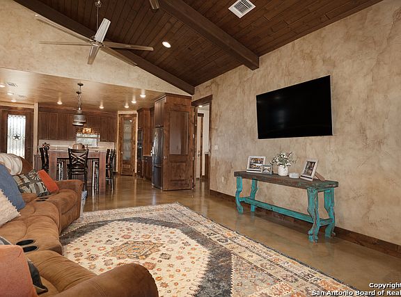 You don't want to miss out on this gorgeous 2136 sqft. 3 bedroom 2 1/2 bathroom CUSTOM home on 2 acres with an open floor plan, wood ceilings and high quality finishes. A bonus room (approx 300 sqft) upstairs off the balcony that has awesome views and can be used for game/media room or comp/study work area. A large covered patio with outdoor kitchen and gas grill, plus a wired sound system with speakers and TV's make it the perfect place for entertaining! Adjacent to the home is a workshop/storage shed with attached carport.