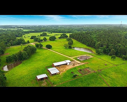 A little slice of Heaven! Offering multiple purposes on 40 fenced/crossfenced acres! This private, secluded picturesque hobby farm offers you a 2,472 sqft home with split 3 BR/2.5 baths, sitting peacefully in center of the 49 acre property. Fall in love with this serene property with its low maintenance all brick exterior with open concept design, one level, all tile floor throughout the home. Enjoy the 987 sqft wrap around covered porch: sip your morning coffee viewing the display of beautiful sunrises on the east facing front porch; drink your wine or favorite cocktail on the west facing rear porch, showcasing gorgeous sunsets overlooking the tranquil one and rolling land, or enjoy your favorite show with your TV ready outlet. Bask in the quiet calm enjoying the wildlife: deer, turkey, squirrels, songbirds and geese &ducks in their seasonal migration. Step inside to an open floor plan, with its lovely brick wood burning fireplace that flows seamlessly into the well laid out kitchen, having American made Whirlpool stainless steel appliances, divided only by a large all tile topped island with numerous outlets perfect for entertaining and gatherings, keeping everyone connected. The hallway on the right of the kitchen has a large shelved pantry and an ample shelved closet perfect for storing your canned garden produce, and leads to the generous MB, offering his/her walkin closets and an enlarged MBth with separate his/her vanities and walkin shower. The hallway to the left of the kitchen has 2 full-sized BR, a deep laundry room, a shelved linen closet, an oversized main Bath and separate utility room with pull down access to attic, providing extra storage. The rear BR has a huge walkin closet with shelving, perfect for storing craft projects or seasonal items! At the end of the hallway is an exterior door to the attached double carport.