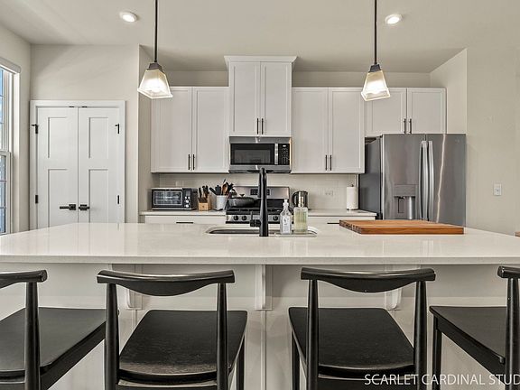 Welcome to an elegant tri-level townhome at 165 Canterbury Way in Lake Zurich, IL, where contemporary design meets quality upgrades. This practically new residence showcases an open floor plan that seamlessly integrates the kitchen, dining, and living rooms together. Hosting will have everyone feeling connected! The high ceilings provide an even more open and breathable space. This Mendelssohn unit also leaves no area unfinished and above grade so you can maximize your living space. The location of this unit has an unobstructed view from the front of the home. The heart of this home is its stunning kitchen, featuring exquisite white quartz countertops and upgraded white cabinetry, perfectly complemented by sleek black kitchen pulls. Culinary enthusiasts will appreciate the all-GE stainless appliances, including the largest refrigerator model, gas range, and island sink. The island kitchen serves as a focal point for casual dining and entertaining, accentuated by upgraded recessed lighting throughout the main level. You're flooded by natural light on both sides of the home and the living room features an extended, modern bay window. These owners had many tasteful upgrades totaling over $16,000. These include luxury vinyl plank flooring that adds a touch of sophisticated style and durability throughout the main living areas. The primary bathroom features an upgraded frameless shower and dual sinks with chic black fixtures. Each additional bedroom has great storage and plenty of natural light. The second floor laundry is a huge perk not having to travel up and down stairs! Storage is no issue as each bathroom even has a closet for all your belongings. In the lower level you'll love the flexibility of the recreation room. Use it as an office, playroom, exercise area, or guest room! The generous two car garage features an upgraded 240v outlet for potential electric vehicle charging. The home is also complete with all LED lighting for increased energy efficiency. The owners also added over $3,000 worth of window treatments to this home! Everything has truly been done and this home is ready for the next owner to move right in! As for the area, you will love being less than 1.5 miles from Ela Library, Costco, Trader Joe's, Target, Paulus Park and more! This home feeds into the excellent Lake Zurich District 95 schools, including May Whitney Elementary School, a new building as of 2021. Enjoy a walk around the lake, just minutes away, or all that downtown Lake Zurich has to offer! Buyers have the option to keep a SimpliSafe security system which includes two security cameras and motion sensors. The HOA fee includes lawn care and snow removal allowing you to enjoy a low maintenance lifestyle. Renting is allowed, but max of 3 units in the subdivision. The maximum combined number of cats or dogs allowed in any unit shall be limited to three.Schedule your showing today so you can start enjoying your new home!