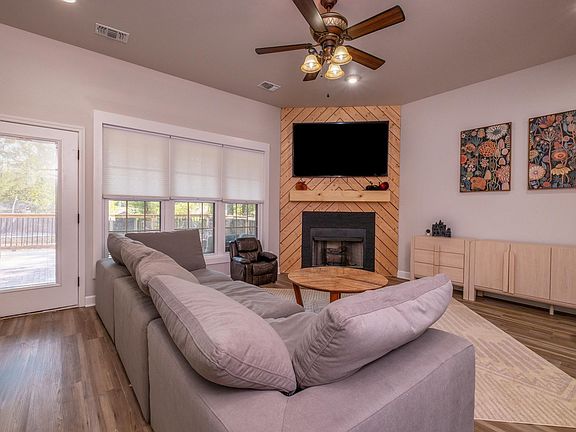 Refreshed fireplace mantelModern hardwareWalk-in closetSleek shower doorUpdated bathVaulted ceilingsLarge fenced yard