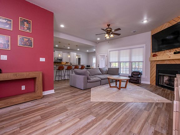 This stunning 2056-square-foot home offers four bedrooms, two baths and a flexible bonus room ideal for an office, playroom or media space. New luxury vinyl plank flooring runs throughout and pairs with fresh neutral paint, vaulted ceilings and updated fixtures. The open living and dining areas are bright and inviting with a refreshed fireplace mantel and sealed doors. The kitchen features newly painted cabinets, modern hardware and stylish bar lighting, while the adjoining laundry room includes painted cabinetry and new lighting. The primary suite has an updated bath with new tile, cabinets, a sleek shower door, pocket doors and a walk-in closet. Secondary bedrooms share a hall bath with a modern vanity. Step outside to a newly added deck overlooking a large fenced yard with improved lighting—ideal for grilling and gatherings.Storage shed conveys. Upgraded switches, plugs, door seals and sleek black hardware enhance efficiency and style. Close to Cabot’s schools, parks and shopping, this move-in ready home blends comfort, convenience and modern updates.