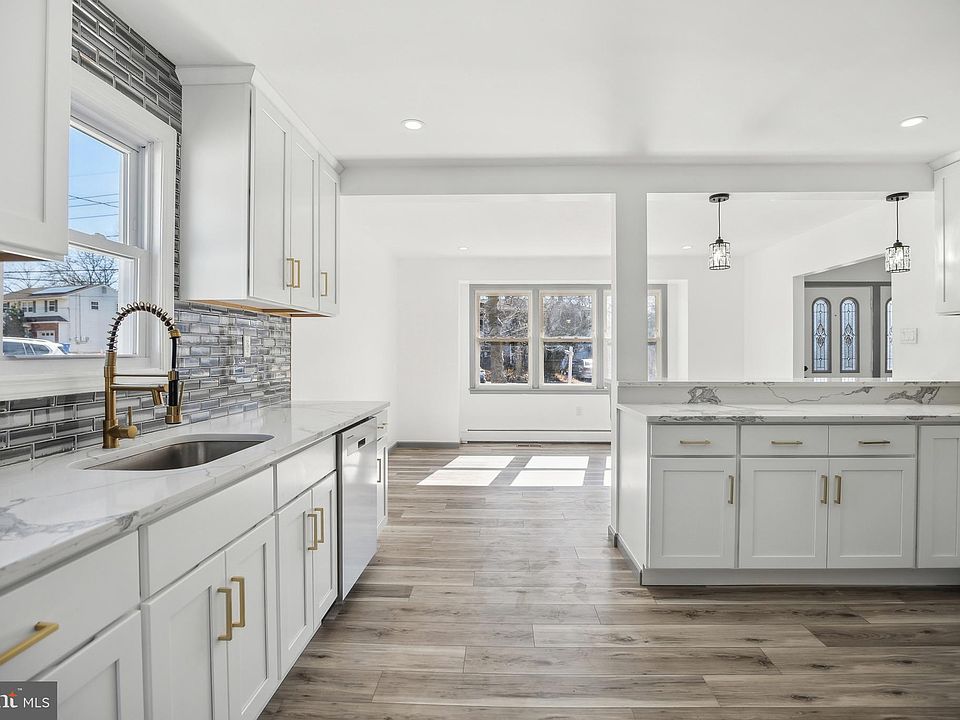 This newly renovated 4-bedroom, 3-bathroom home in Woodbury Heights is an absolute gem! From the stunning stone countertops to the spacious family room, formal dining room, and living room, every detail has been carefully crafted to impress. The large bedrooms are all on the top floor, including a master suite with a private en-suite bath, offering the perfect retreat. This home is equipped with 2-zone central A/C, vinyl and wood floors, a cozy fireplace, and an attached garage for added convenience. The enclosed backyard provides endless possibilities for outdoor entertainment, whether you envision a deck or a pool. Situated in a top-rated school district and with easy access to Philadelphia via highways or bus, this home is ideally located in a friendly, welcoming neighborhood. Make this stunning house your home!