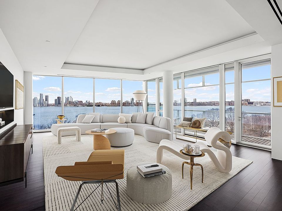 Walls of windowsArchitectural columnsFloor-to-ceiling triple-paned windowsProtected hudson river viewsGenerous walk-in closetsSpacious private balconyDuravit water closets