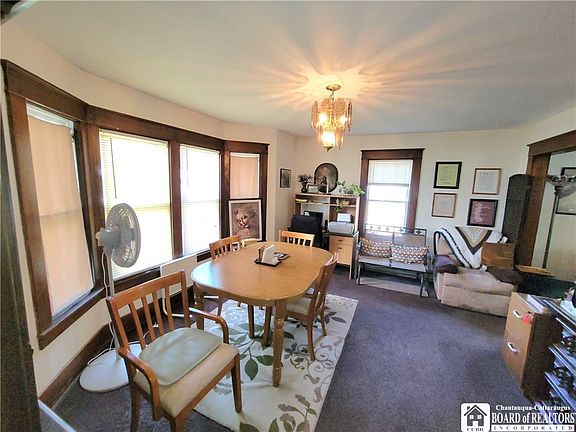 This 3-bedroom home is on the Northside of Jamestown. As you come through the front doors of the coved front porch you enter the living room off of that to the right is a den area. This home has a large kitchen with lots of cupboard space, with dining room off of that. 115x50 lot with a 2-car garage.