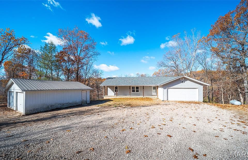 WELCOME to this well-built 3 Bedroom/3 Bath home on 14+/- acres just off a blacktop road by the Meramec River, sitting quietly near the end of a lane with very private natural views. Among its many features, this home offers solid oak kitchen cabinets, a pantry, a beautiful solid surface kitchen counter, and a jetted tub in the primary bedroom bathroom. The lower level is an ideal entertaining space, featuring a fully finished bathroom, a spare room, a pool table with a vintage overhead Budweiser luminaire, and a walk-out to the backyard. Other important features of the lower level include tall ceilings, a whole-home Water Softener, and a GENERAC 22KW Generator that automatically powers on when electricity goes out. The 14 acres offer an old Lean-to and a small pasture for horses (no longer fenced), an additional Lean-to for equipment storage, and trails through the acreage to explore the land. SCHEDULE AN APPOINTMENT TO SEE THIS PROPERTY TODAY! The sellers love this home and certainly welcome inspections, but this home is being sold AS IS.