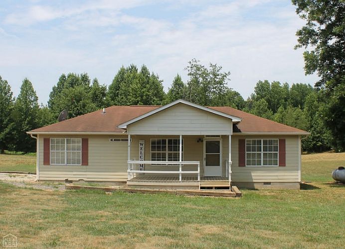 Are you ready for some peace and quiet? This cozy home is the perfect place. The home has a open floor plan with laminate floors throughout. The main bedroom has a nice walk-in closet and bathroom. The view from the deck looks out into some woods that are home to deer and wild turkeys. There is plenty of storage in the outside building. Just a short distance on gravel this house is ready for you to call it home.