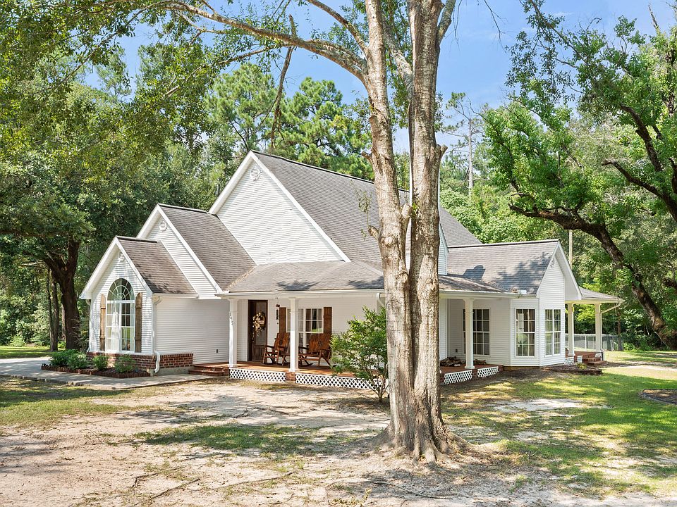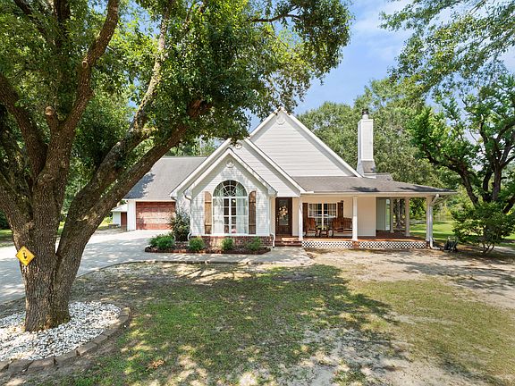 This alluring ''Farmhouse'' has charm to spare starting in the front yard shaded by beautiful oak trees, and surrounded by 6 beautiful acres ! Upon entering you are greeted by a LARGE living room with cathedral ceiling and wood fireplace. With over 2600 sq ft of living space, there is NO shortage of room to entertain in this 4 bed/4bath home. Formal dining, HUGE kitchen with plenty of cabinets, breakfast area and much more. Large master bedroom with French doors leading out to enjoy quiet mornings on the porch that connects. Master bath with his and her sinks, large jetted soaking tub and separate shower. 2 additional LARGE bedrooms downstairs, and one upstairs. If the house amenities aren't enough, outside you will find gorgeous porches that surround, deck area,20x30 shop, & pond.