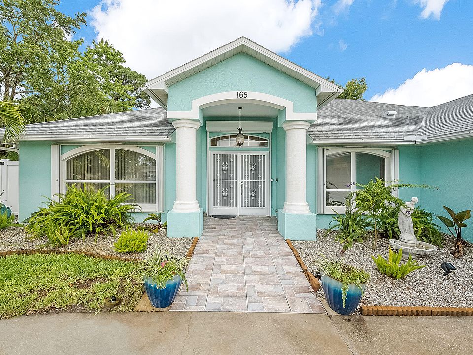 Feel like you are living at this beach in this beautiful coastal theme home. Open and bright, split plan, large windows and white stone backyard convey an island look. Consistent new flooring throughout, the updated kitchen has multiple dining options, newer appliances, quartzite countertops and double ovens. Fenced backyard, whole house generator, Accordion shutters and 2022 roof provide ease and comfort. Beyond the trussed lanai is an additional outdoor covered area to enjoy the quintessential Florida lifestyle. An additional bonus is a private office located behind the master bathroom too! This beautiful home is located in the heart of Sebastian with no HOA.