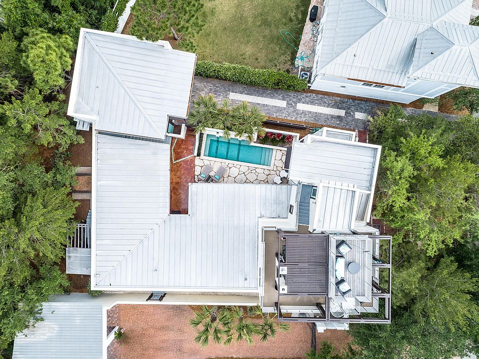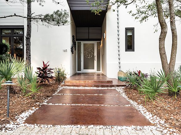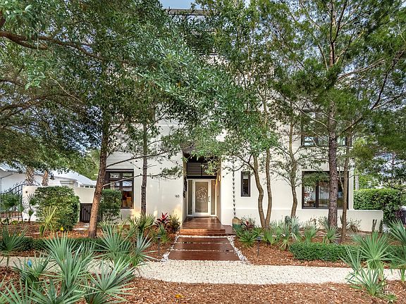 The epitome of coastal chic, this contemporary 5BR/5.5BA Rosemary Beach home features a welcoming and open design that makes every day feel like a celebration. Two living areas connect to a dining area and luxurious chef's kitchen providing space for guests to spread out and relax. A sleek covered lanai with outdoor fireplace leads to a striking private swimming pool with three spill fountains flowing from a stacked stone wall. A third-floor rooftop deck with both covered and open spaces to lounge is the perfect place for soaking up refreshing Gulf breezes. Follow the spiral staircase to a fourth story viewing tower with spectacular, panoramic community views stretching to the Gulf of Mexico.