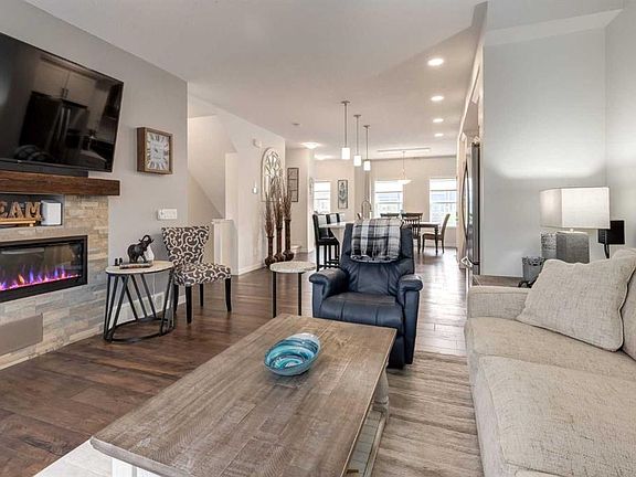 ** NO CONDO FEES. Welcome home to this beautifully finished home that combines modern design with everyday functionality. The entry level opens with a welcoming foyer that leads into the oversized attached triple tandem garage, fully insulated and offering room for three vehicles, with the flexibility of converting the extra stall into an office or flex space. The main floor is bright and open, featuring a spacious kitchen with a large island, quartz countertops and stainless steel appliances, seamlessly connected to a generous dining area and a family room complete with mantle and an electric fireplace. From here, a door leads directly onto a large deck with a gas line for your barbecue, perfect for entertaining or enjoying summer evenings. Upstairs you will find the private primary suite with walk-in closet and ensuite, along with 2 additional bedrooms, a full bathroom and a conveniently located laundry room. With central air conditioning and loads of windows throughout, this home is filled with natural light and offers a comfortable atmosphere on every level. Set in the desirable community of Sunset Ridge, this property is close to schools, parks, pathways and amenities, with quick access into Calgary or the mountains, making it a fantastic opportunity to own a bright, move-in ready home in a great location.