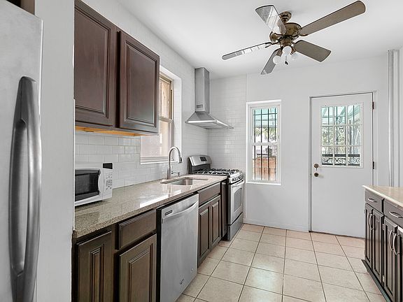Space, privacy, comfort, charm, and convenience are exactly what you need right now, and this gracious historic Prospect Lefferts Gardens single-family eight room brick townhouse delivers on all fronts. The stately circa 1916 Colonial Revival was designed by noted architecture firm Slee & Bryson and seamlessly blends the charm and elegance of yesteryear with the amenities of today. On the main level is an expansive living room with an inviting wood-burning fireplace flanked by built-in bookcases that leads into the banquet-sized formal dining room with wainscoting and a picture window along with an antique breakfront. The separate kitchen has been updated with stainless steel appliances (including a dishwasher) and granite countertops and opens to the covered deck and large new patio.