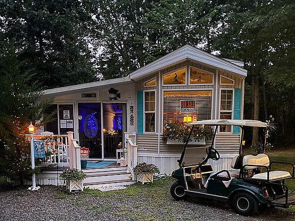 Own your own piece of Paradise in the wonderful Cape May County Community of Carol Lynn Resorts East, which is nestled in Woodbine New Jersey, just 15 minutes from Sea Isle City. It offers the perfect escape for comfortable living near many scenic shore points. As you enter through the private security gate, a feeling of relief blankets your body. This Cottage #412, is a 2006 Chariot Eagle, which sits on the corner of a Cul-de-sac on an oversized Lot with a large side & back yard. It has newly painted beautiful aqua blue shutters, as well as a serene & private back deck next to the wooded landscape, along with an 8x8 shed & a front porch with durable composite decking, both being perfect for relaxation, while listening to the whispers of wind chimes, crickets, tree frogs & cicadas.