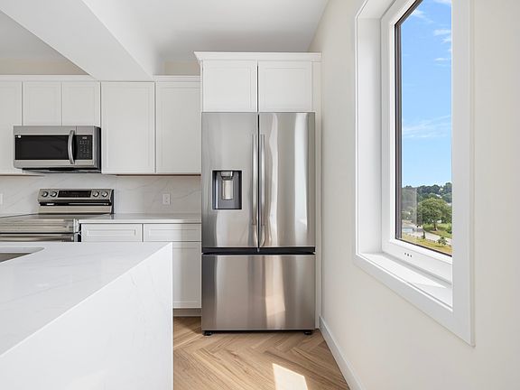 Inside, everything is new from the modern kitchen with stainless steel appliances and stone countertops to the central air and in-unit laundry. An elevator is available for ease of access.