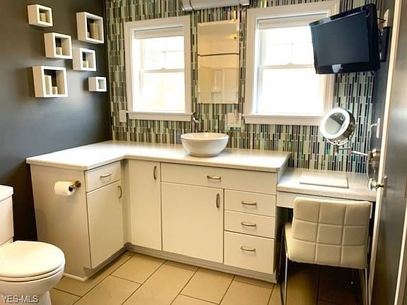 Get ready to fall in love with this charming 3 bedroom home, offering modern updates and great curb appeal! As you approach the home, you'll notice the clean brick and vinyl exterior, neatly lined with newer concrete driveway and updated landscaping. Decorative stamped concrete leads you to the large front porch with newer door and coach lights. The oversized garage was recently constructed featuring skylights and electric service. Nearby, the fenced in backyard offer privacy, and the stamped concrete back patio with ceiling fan is perfect in the warmer weather. Inside, the living room lets in tons of natural light and is anchored by a gas fireplace with newer insert. In the dining room, tile floors run underfoot and lead you to the kitchen featuring stainless steel fridge and range. The main bathroom upstairs is completely redone, including vanity, countertops, vessel sink, tile floors, tub surround, faucets, makeup vanity with mirror, decorative backsplash, and more! Three nice sized bedrooms round out the upstairs. The lower level is bright and clean with its newer glassblock windows; there is an additional full bathroom with vanity and shower/tub combination as well as the laundry space. The majority of the windows have been replaced and feature custom blinds. Some additional finishing work is needed in certain areas throughout the home, but most of the large things have been completed.