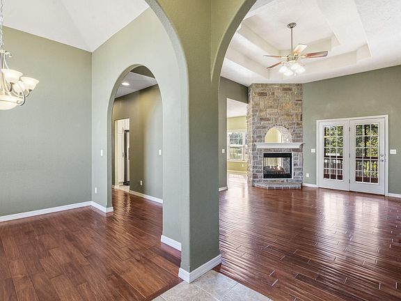 Spacious 5-Bedroom Home on 2.20 Acres with Ozark Hills Views.This stunning 5 bedroom, 3 bath residence offers 3464 sq ft of living space on a beautifully landscaped 2.20-acre lot. Enjoy serene Ozark Hills views, mature shade trees, and a backyard designed for privacy with full fencing and a double gate.Inside, the home features a newly remodeled kitchen showcasing designer cabinetry with upper glass-pane accents, a custom range hood, and included refrigerator. The high arched entryway ceiling creates an impressive first impression, while the main-floor primary suite provides convenience and comfort. Additional spaces include a dedicated office, workout room, and an ample laundry room with washer and dryer included.Upgrades include two water heaters, central vacuum system, and a sprinkler system covering most of the yard. Outdoor living is enhanced with a screened patio, basketball court, and plenty of space to relax or entertain.This property combines elegance, functionality, and natural beauty -- a true retreat in the Ozarks.