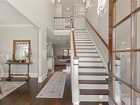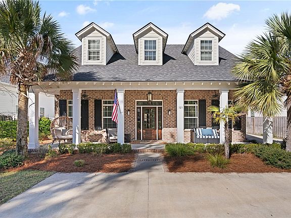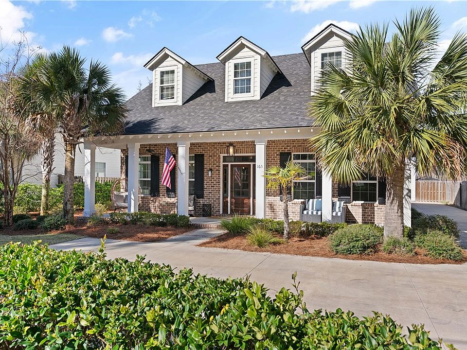 This charming 4 bedroom 3.5 bath low country style residence is located just a short distance from Village Creek in the heart of St. Simons Island. The residence offers a welcoming front porch, and comfortable floor plan for those seeking comfort, style, and functionality. The open concept living area is highlighted by a grand two story entry foyer, formal dining, and a great room with fireplace and custom built in cabinets. The breakfast area seamlessly connects to the kitchen, which is equipped with a pantry, gas stove, island, and quartz countertops. Wood floors in the living areas add warmth and elegance to the space. The main level features a luxurious primary suite with his and hers closets, double vanity, tub, and separate shower. Upstairs you will find 3 spacious guest rooms with 2 full baths, providing plenty of space and comfort for the entire family.. You will also find a large fully floored walk in attic space on the second floor. The back yard is made for entertaining accompanied by an oversized screened porch, grilling area, detached 2 car garage , custom gas fire pit, and storage shed. This home truly offers a blend of luxury, comfort, and outdoor enjoyment in a desirable location.