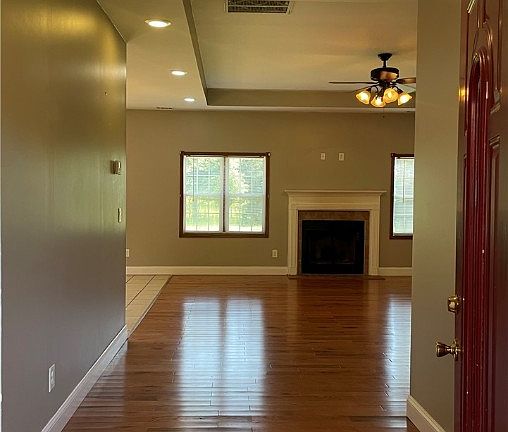 Step inside to discover a harmonious interior, where an inviting hardwood floor entryway seamlessly connects to the living area. The kitchen graciously unfolds, offering ample room for culinary inspiration. This home exudes a sense of sophistication, courtesy of its recessed lighting and tray ceilings, both in the living area and the primary bedroom. The primary bedroom, in addition, boasts an en-suite bathroom complete with a spacious walk-in closet.