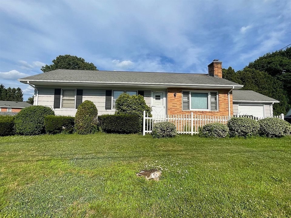 Own this sweet ranch with great curb appeal, ready for you to move right in. The eat in kitchen has plenty of cabinet space and flows right into a sun-lit living room highlighted by a fireplace, picture window and hardwood floors. Refrigerator and stove remain for the lucky buyer. Three bedrooms, all with hardwood floors and two with double closets, and full bath with linen closet. The enclosed breezeway connects you to both the garage and backyard where there is plenty of space for your outdoor entertaining needs. Fantastic location on a side street yet close to everything you need like highway access, shopping and dining. Great one level living opportunity, don't wait to check it out!