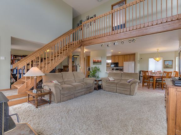 Come see this beautiful home nestled back on over 6 wooded acres of private edgewood property. It features a nice open floor plan with an entrance that opens up to an inviting living room with large windows, vaulted ceiling and a wood burning stove. The passive solar sunroom adds to the charm and helps with the heating bills. All bedrooms and laundry are located upstairs.The master bedroom has a private view deck, bay window and walk in closet. The master bath has double sinks, jetted tub, steam shower and new tile flooring.There is an additional large deck upstairs. Double car attached garage, storage shed and a 341 square foot detached work shop for extra storage and projects.