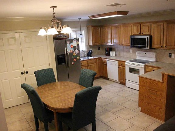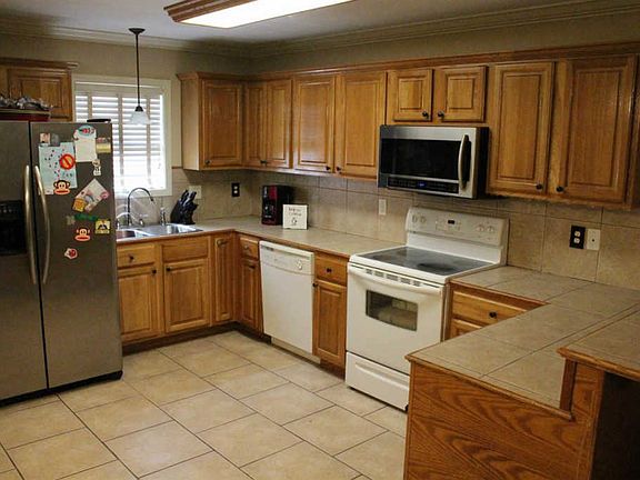3 Bedroom, 2 full baths, open floor plan. Spacious kitchen features breakfast nook, breakfast bar, electric range/oven, dishwasher, built-in microwave, double pantry, ceramic tile counter tops. Washer & dryer closet in kitchen w/overhead storage. Total Electric. Spacious living room with tray ceiling & recessed lighting. Master Bedroom features a walk-in closet, "office nook", master bathroom with garden tub shower combo, ceramic tile floor. Bedrooms 2 & 3 have walk-in closets. Hall bathroom has double sinks, fiberglass tub/shower combo. Home features wide crown molding, 16x16 ceramic tile floors in all rooms but bedrooms. Roof replaced in 2019.