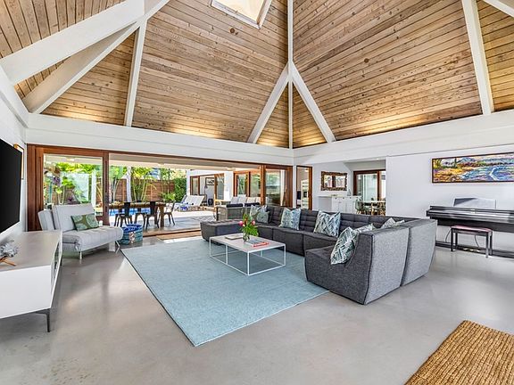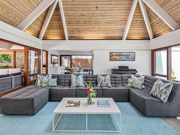 Tropical landscapingPrivate backyard gateSliding glass wallsBreathtaking lanikaiVaulted ceilingsPlumeria treesNewly renovated kitchen
