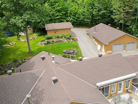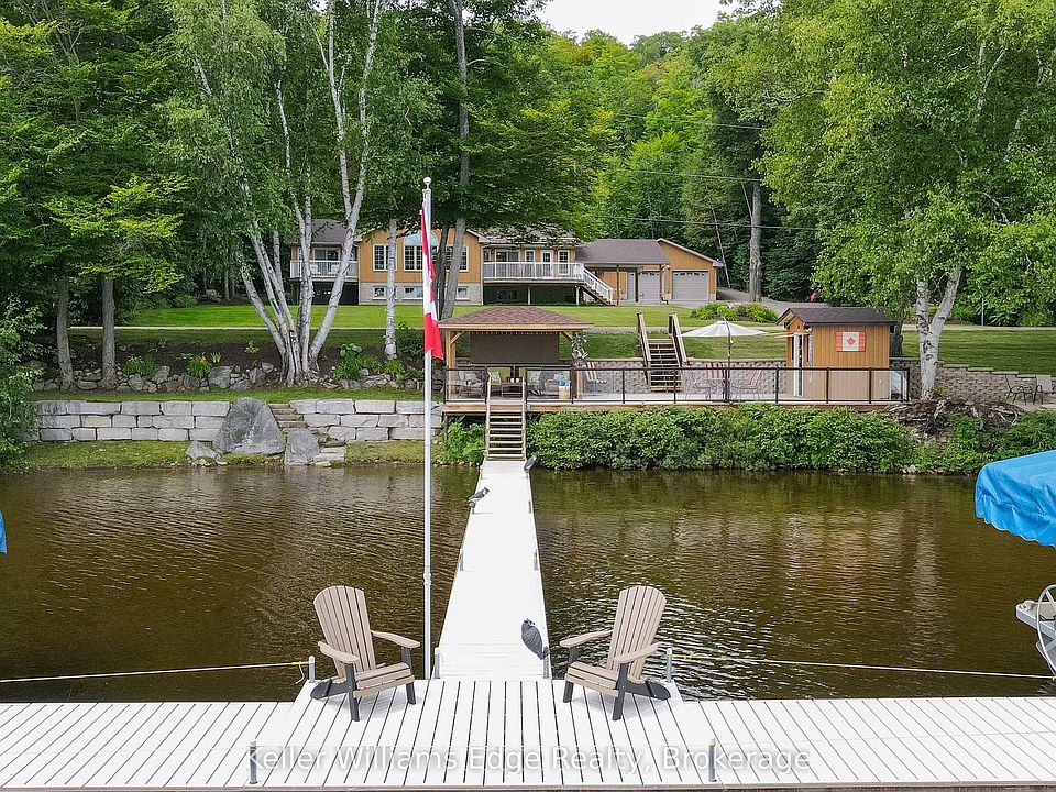 What could be more perfect than an Ontario lakefront home to call your own? This stunning custom-built raised bungalow offers an unparalleled waterfront lifestyle on the prestigious Kamaniskeg Lake, boasting 90 km of breathtaking shoreline for boating, fishing, and year-round enjoyment. Inside, explore 3,200 sq. ft. of meticulously designed living space with beautiful hardwood floors and an open-concept kitchen and dining area featuring black stainless-steel appliances, granite countertops, and a seamless flow into the great room, where a striking stone accent wall and wood stove create the perfect ambiance. Wake up to stunning lake views from your private primary suite, complete with a custom walk-in closet, spa-like ensuite, and personal deck. The main floor also offers a convenient laundry and mudroom, while the fully finished basement boasts a spacious family room with a fireplace and wet bar, two additional bedrooms, a full bathroom, and a dedicated gym/storage area. Step outside to experience lakefront living at its finest with a custom dock featuring two boat lifts, multiple decks, an electric sun awning, and a gazebo with an outdoor cabana, electricity, and a bar fridge, ideal for entertaining. Spend summer nights gathered around the fire pit or outdoor fireplace, and enjoy the convenience of two garages (large 30'x40' garage is heated and insulated), an in-ground sprinkler system, and even a charming playhouse. This exceptional property is more than a home it's a lifestyle, offering the perfect balance of serenity and accessibility, just 3.5 hours from the GTA, 40 minutes to Bancroft, and 50 minutes to Algonquin Provincial Park. Don't miss this rare opportunity; request the detailed features list and make this dream home yours today!