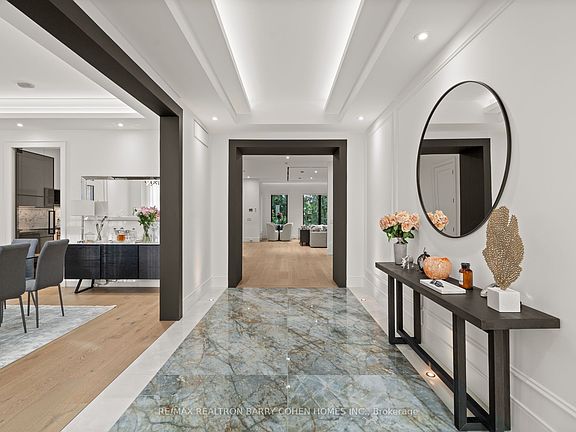 Newly built modern residence in the heart of South Leaside offering nearly 6,500 sq.ft. of living space! Exceptional designer-curated finishes and smart home technology throughout. Designed for the modern family and built to impress, this magazine-worthy residence perfectly blends luxury, functionality, and versatility. Oversized principal rooms, two private home offices, and a full legal in-law suite with income potential make it ideal for multigenerational living or a flexible live-work lifestyle.Showcasing engineered white oak floors, soaring ceilings, and expansive windows with motorized blinds, every detail reflects thoughtful design and quality craftsmanship. The custom kitchen is a true centerpiece - featuring a panelled fridge, trash compactor, waterfall island with hidden storage, and full-height cabinetry - flowing seamlessly into the family room with a marble gas fireplace and walkout to the backyard. Step lighting, integrated speakers, and sleek modern finishes complete the main level's sophisticated aesthetic.Upstairs, four oversized bedrooms include a magazine-worthy primary suite with a slatted wood feature wall access to His & Hers WICs, cove-lit ceiling, fireplace in stone surround, fully equipped bar, walkout to a private balcony (hot tub-ready), and a spa-inspired ensuite with steam shower, freestanding tub, heated floors, and double vanities. Secondary bedrooms are equally impressive, and a dedicated laundry room with dual washer/dryers enhances everyday ease. Upstairs office may be converted to a 5th bedroom.The lower level extends the living experience with a gym, sauna, recreation lounge, and wet bar equipped with a dishwasher and bar fridge - plus a soundproofed legal in-law suite with its own entrance, kitchen, 3-piece bath & laundry.Located in the coveted Bessborough/Rolph school district, this home delivers a rare combination of sophistication, functionality, and future income potential in one of Toronto's most sought-after neighbourhoods.